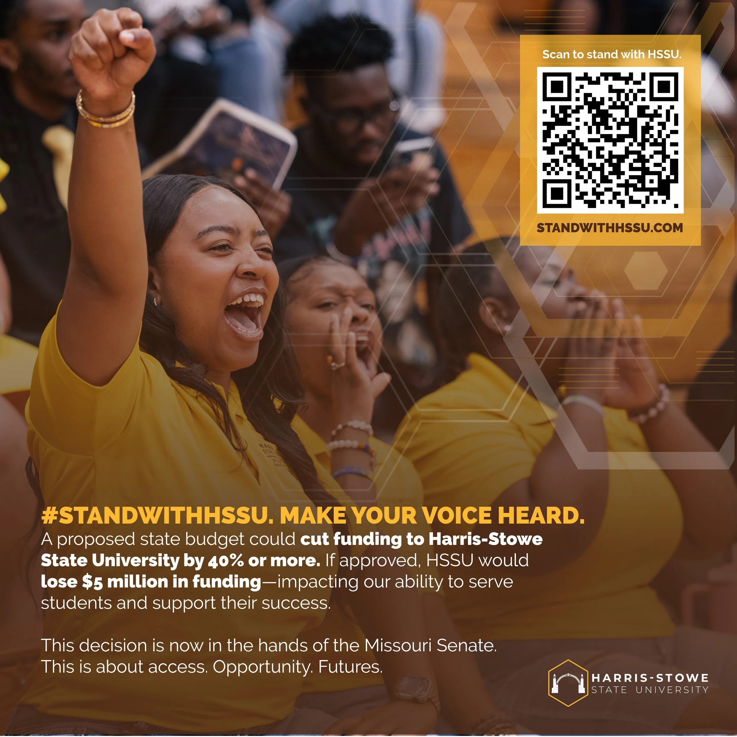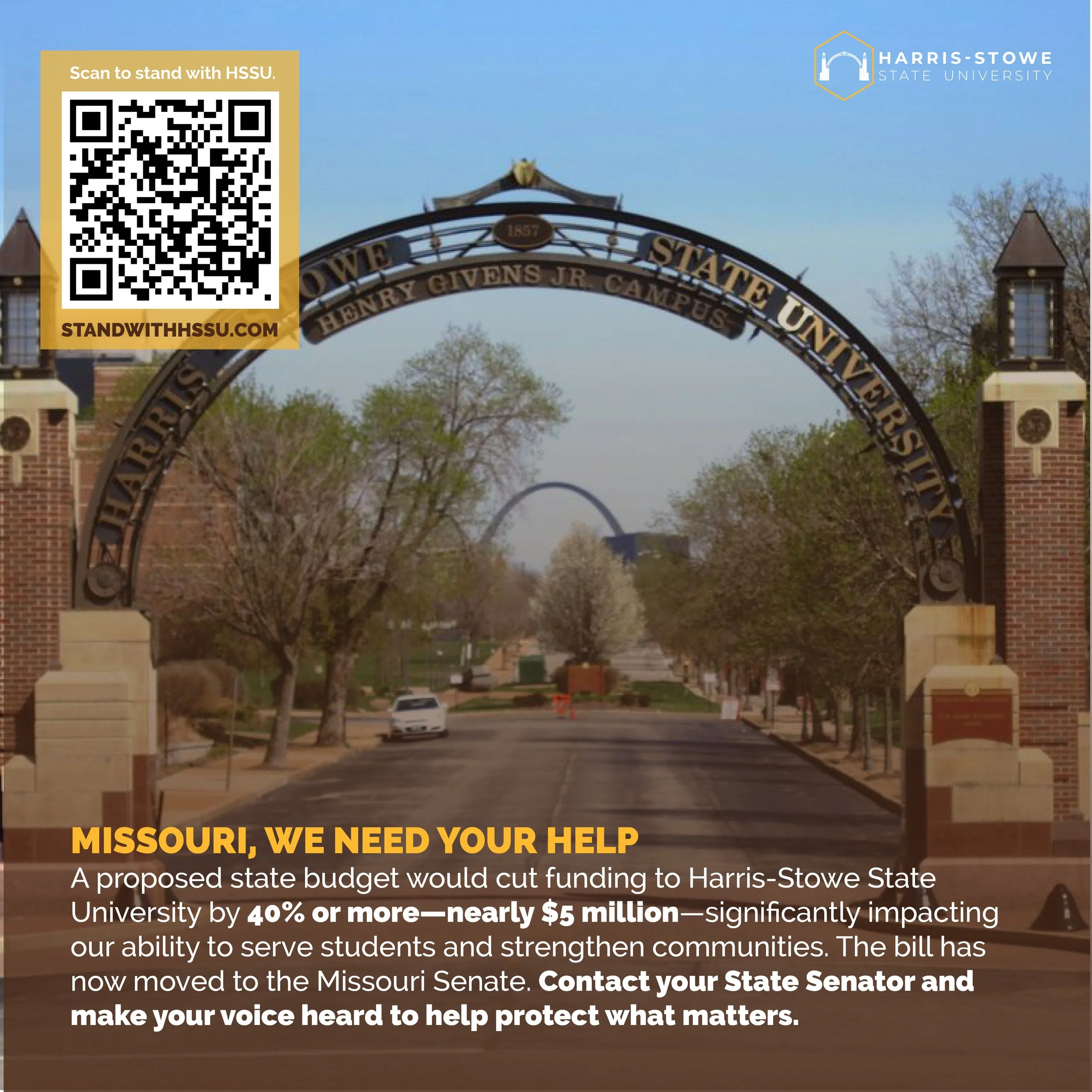 I ask you to use your voice, engage with your legislators, and advocate for the future of our university. Your support is critical to ensuring that Harris-Stowe can continue to serve, educate, and empower generations to come.